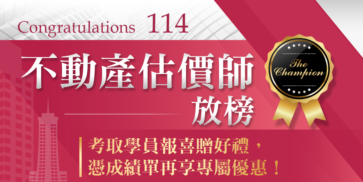 ※報名差分/考取優惠,須憑本人114不動產估價師成績單臨櫃辦理